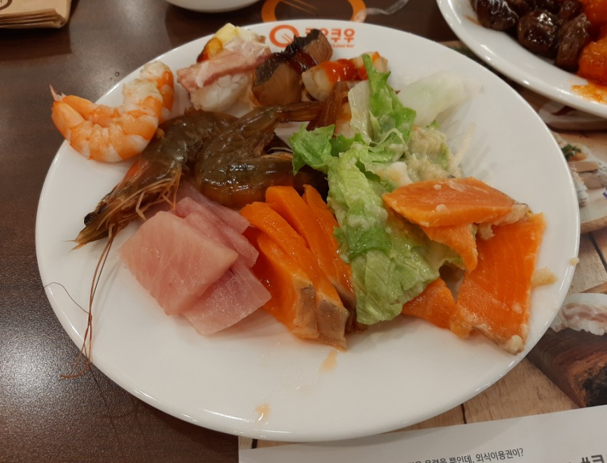 쿠우쿠우 안산점의 경우 위치자체가 안산에서 유동인구가 많은 편에 속하는 중앙역 근처에다가 주말 평일 가릴것없이 이용객들이 많아 전체적으로 음식들이 따뜻하고 맛있었습니다.
