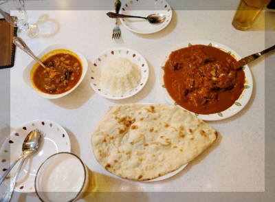 페르시안궁전에서는 우리가 흔히 아는 인도식 커리외에도 스튜같은 느낌의 요리들, 케밥 등 다양한 요리들이있었습니다. 그중 저는 페르시안식 치킨까스 카레와 양고기감자 스튜를 먹어봤어요.