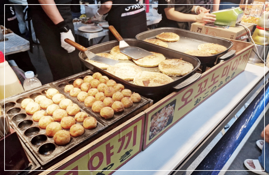 공연이 열기라면, 먹거리는 그 열기를 더욱 달아오르게 만드는 요소였죠. 페스티벌 현장에는 다양한 푸드트럭과 먹거리 부스가 마련되어 있어 관객들의 입맛을 만족시켰습니다. 떡볶이, 타코야끼, 야키소바, 오코노미야끼 같은 인기 간식부터 타코와 같은 남미 음식까지, 월드 푸드를 골라 먹는 재미가 있었습니다.